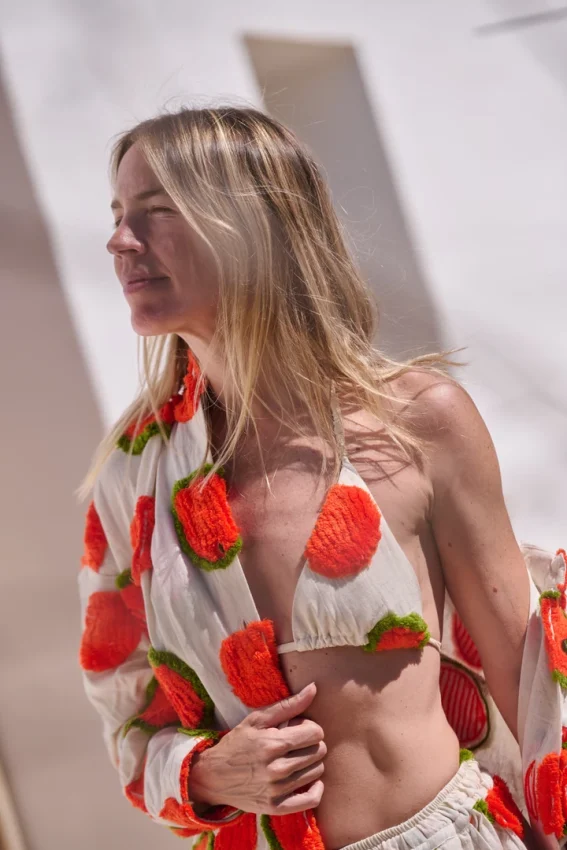 Hand wash recommended with cold water. Air dry in the shade, do not tumble dry.