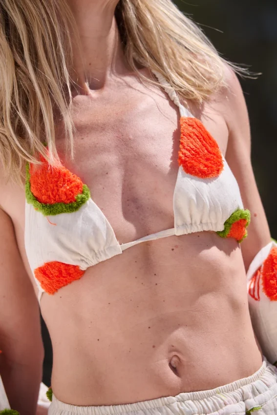 100% organic cotton with wool embroidery. Adjustable at the neck and back.