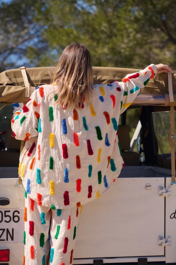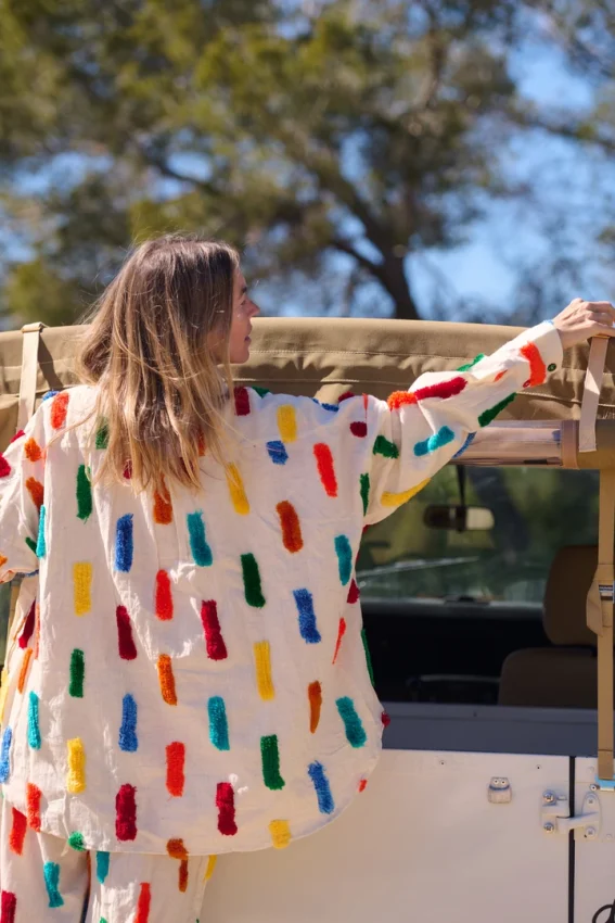 Crafted from 100% organic cotton, finished with wool embroidery.