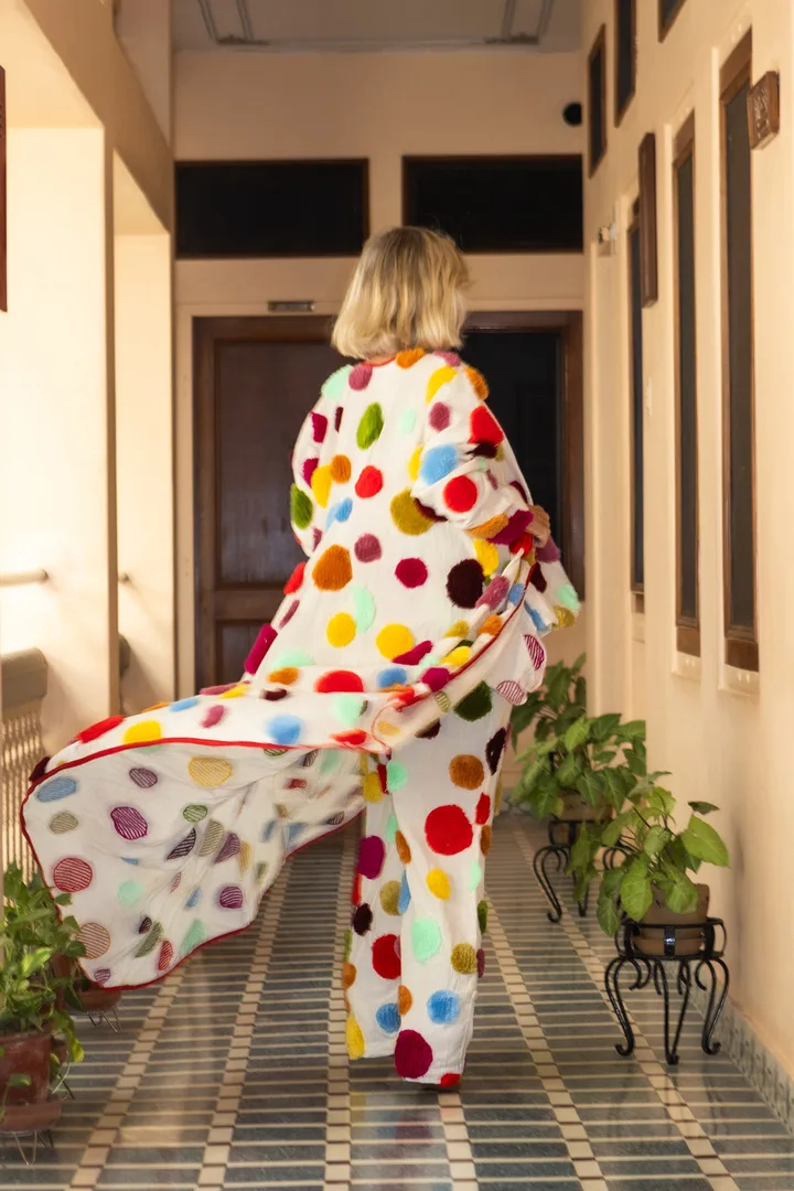 100% Algodón con bordados en lana.
