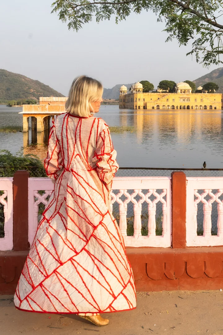 De manga larga con un delicado doblez en la muñeca, este abrigo presenta dos cierres frontales con abotonadura, permitiendo que fluya con cada paso. Y si deseas marcar la cintura, incluye un cinturón hecho con el mismo tejido.