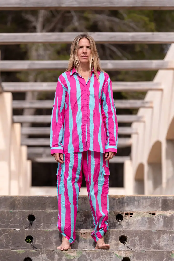 Las mangas llevan una tira con botón para ajustar el largo según tu estilo o el momento. Una prenda versátil, cómoda y con mucha personalidad.