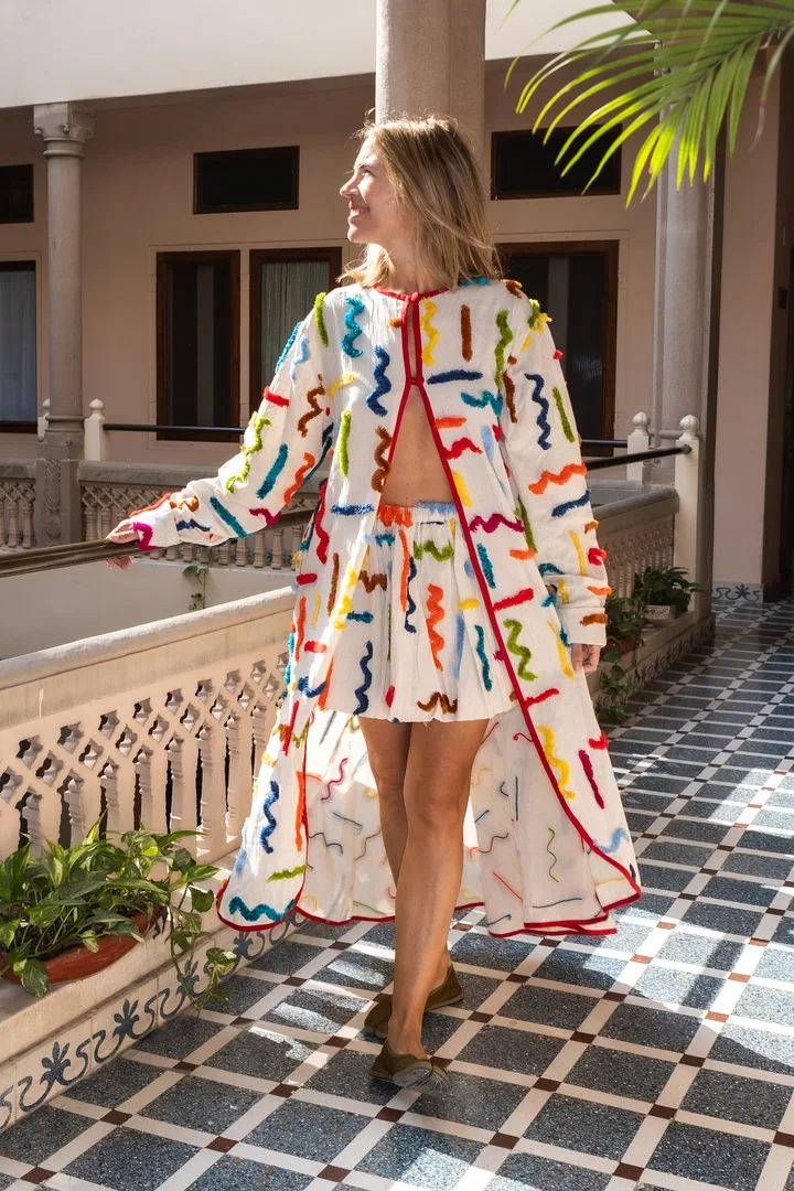 100% Algodón con bordados en lana.