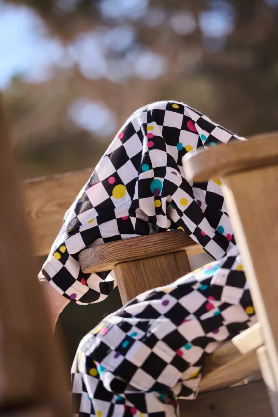Silueta amplia, cintura elástica y bolsillos laterales y cargo que combinan funcionalidad y presencia. Las tiras laterales permiten ajustar el largo y jugar con la forma.
